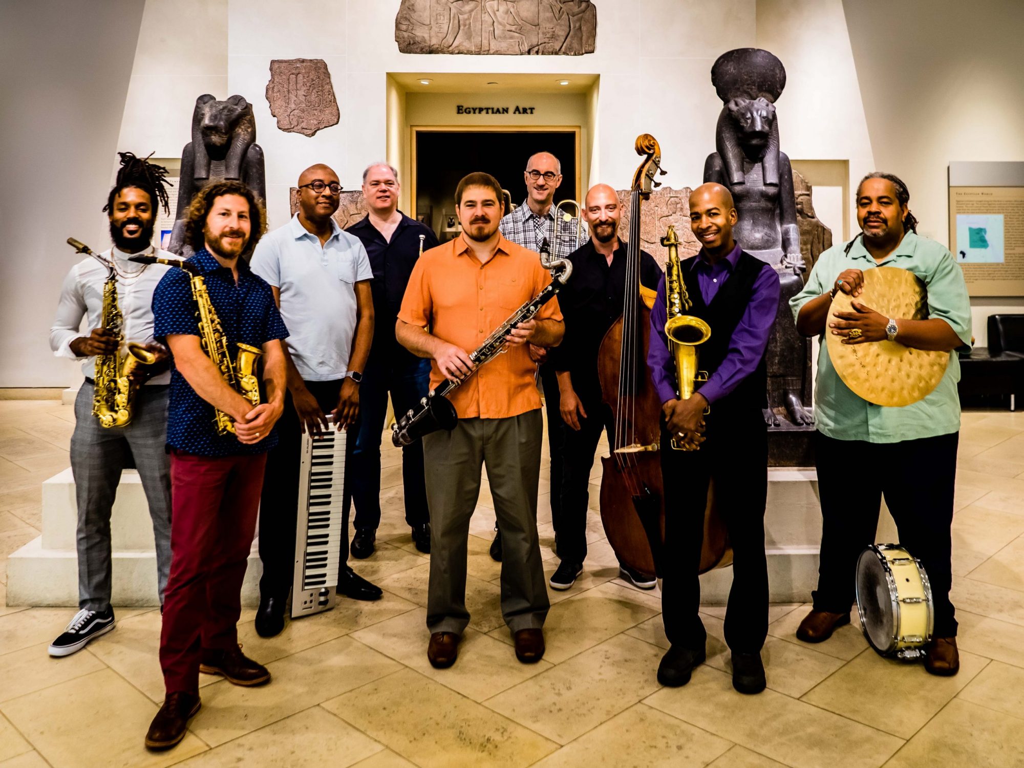 A nonet of six horns (bass clarinet, alto saxophone/flute, alto saxophone, tenor saxophone, trumpet, trombone), piano, bass, drums and optional vocalist with musicians from Baltimore, New York, Washington, DC, Detroit, and Tennessee. The group’s instrumentation, compositions, and arrangements create a rich sound with music that incorporates straight-ahead jazz with other influences from classical to Middle-Eastern themes. The music explores a range of moods while swinging hard and showcasing the diverse soloists in the ensemble.