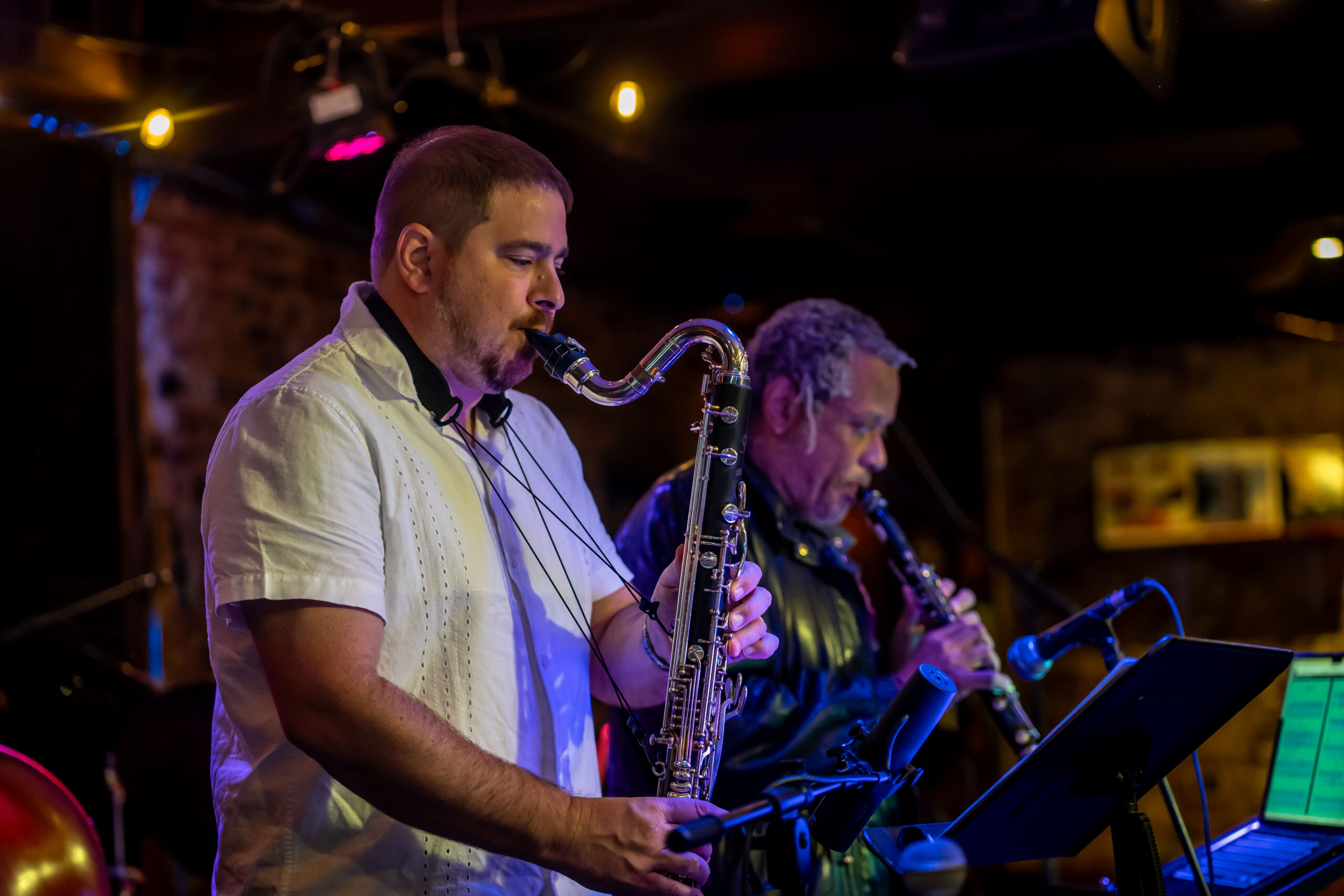 Traditional quartet and quintet ensembles with piano, bass, and drums but featuring Marcus’s rare use of bass clarinet as a lead horn in straight-ahead jazz. The ensembles present Marcus’s original compositions and arrangements of jazz standards and the quintet features a second front line instrument of clarinet, guitar, or vibraphone. The groups feature demonstrate Marcus’ rich harmonic approach and ability to present the bass clarinet as a hard blowing jazz horn equal to saxophone and trumpet as a front line solo instrument.
